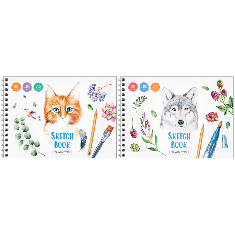 Скетчбук 40л. 105*195 на спирали, 120г/м2