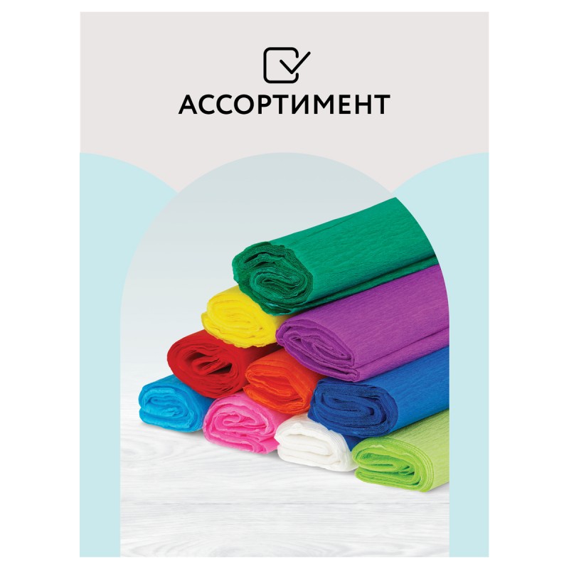 Гофрированная бумага 50*250см в рулоне цвета в ассорт.