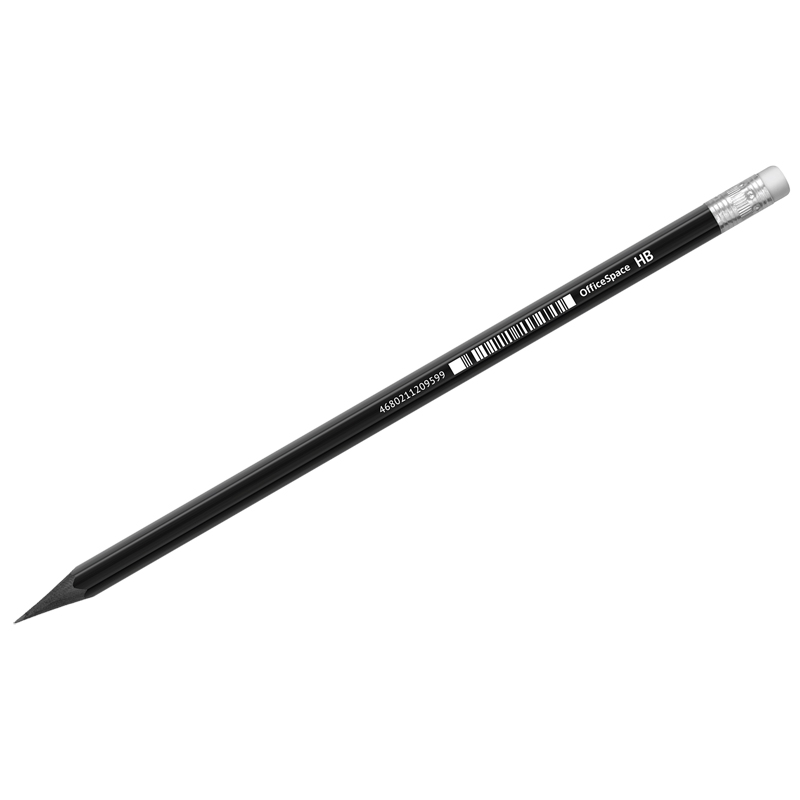 Карандаш "OfficeSpace" черный корпус, с ластиком, пластик HB 269153 /12шт.