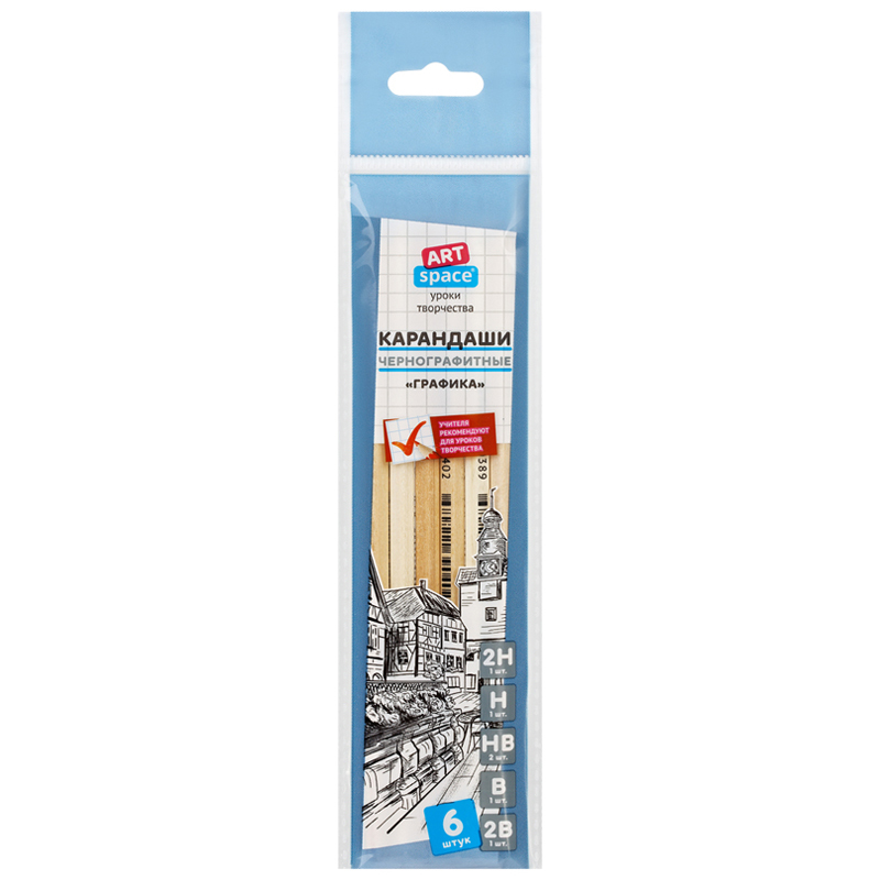 Набор карандашей разной твердости 6шт "Графика"2H-2B BP_4105