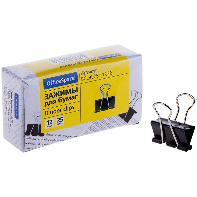 Зажимы д/бумаг 25мм "Спейс" черн. BCLBL25_1236 12шт