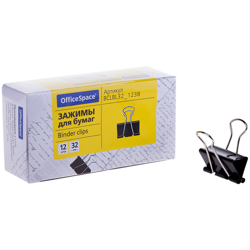 Зажимы д/бумаг 32мм "Спейс" 12шт черные BCLBL32_1238
