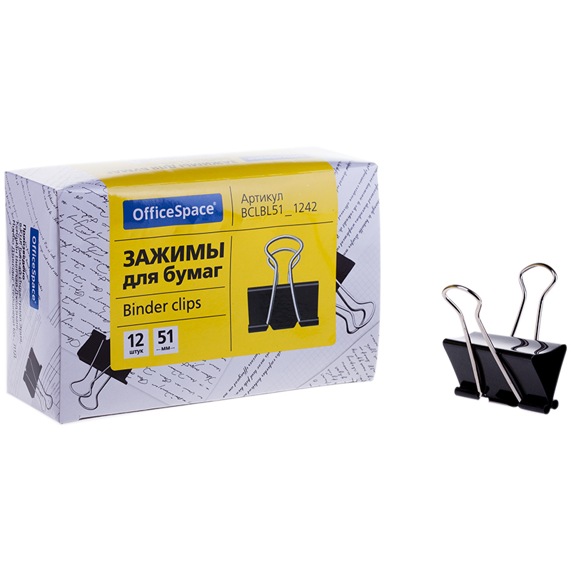 Зажимы д/бумаг 51мм "Спейс" 12шт черные BCLBL51_1242