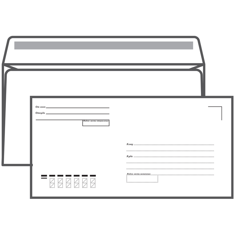 Конверт Е65 "Куда-Кому" отрывная лента 110х220мм