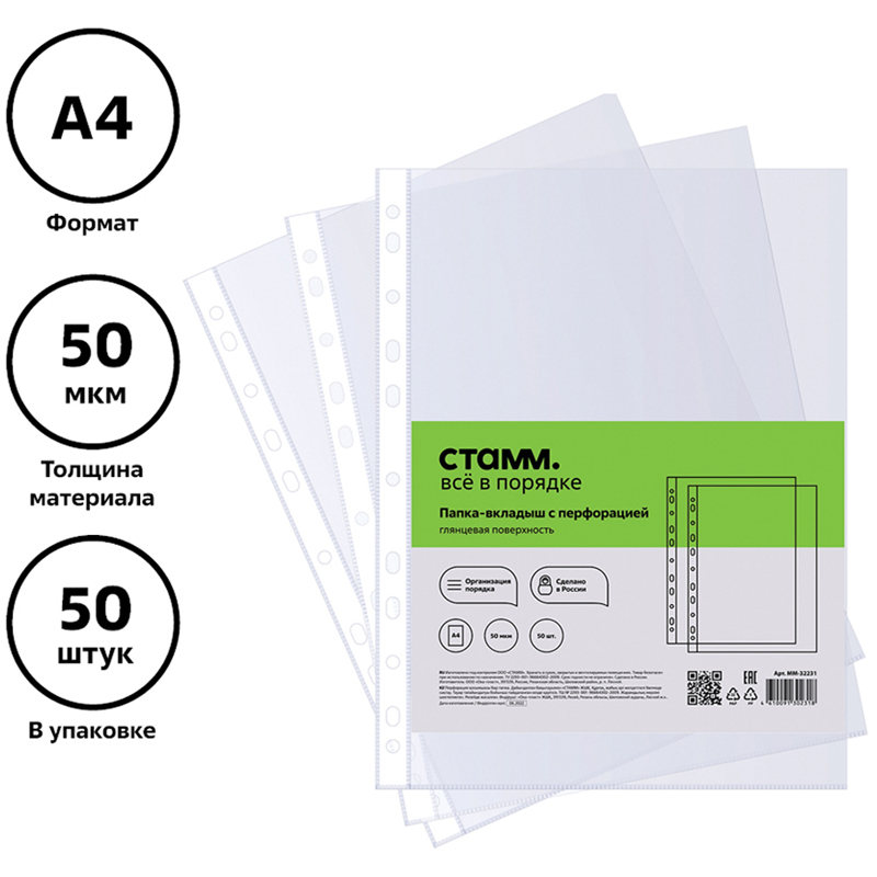 Вкладыш с перфорацией А4 "Стамм" 50мкм 50шт ММ-32232