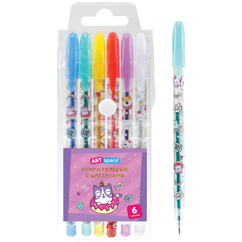 Набор гел. ручек 6цв. "Кот-сластена" с блестками GPCC06_53029