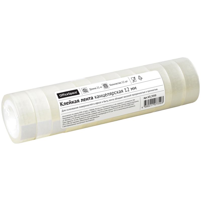 Скотч 12мм*21м прозрачный "OfficeSpace" КЛ_9350 /12шт